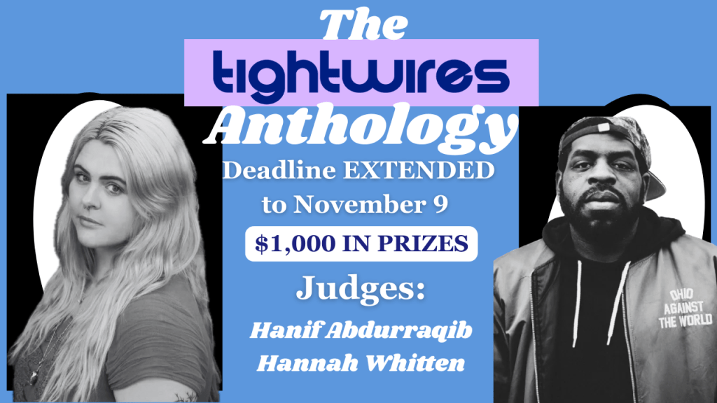 Submission Guidelines: We are specifically looking for unpublished work that is inspired by a Tightwires prompt or interview with a featured guest. This inspiration can be in the form of a direct response to a prompt or a more open-ended response to an issue/conversation with one of our guests which made you think more deeply about a topic addressed. We are not prescriptive, and we welcome work that offers different interpretations and makes us see an interview or a prompt in a new way.